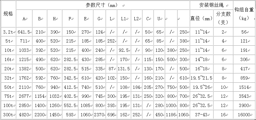吊鉤技術參數(shù):